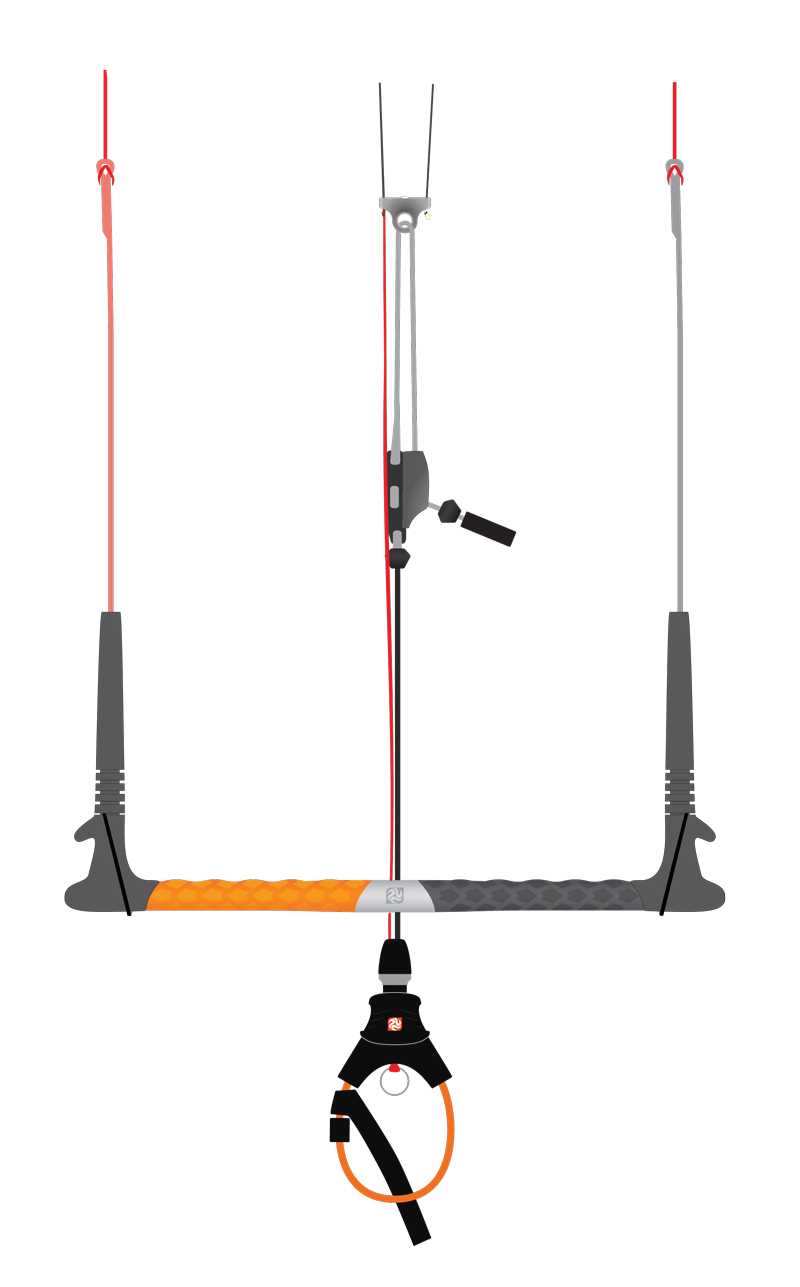 De kite komt met de Navigator V6 bar met 22m lijnen, deze bar heeft een medium harde grip. We kunnen de bar zo afstellen dat hij ook geschikt is voor kortere armen, zoals voor de jonge talenten en de dames!